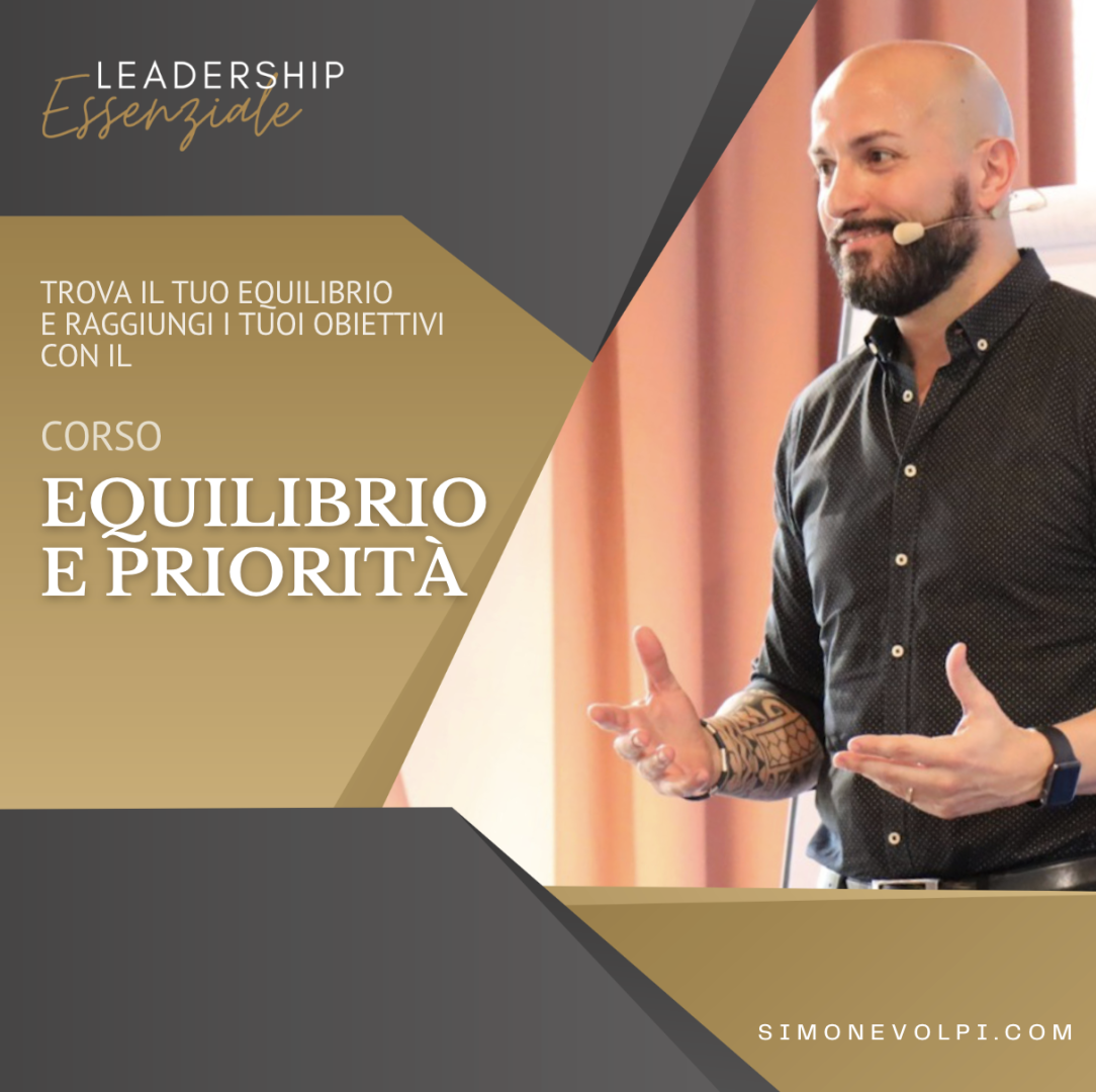 "Equilibrio e priorità” è un corso di due giorni pensato per chi sente di essere intrappolato nella mentalità del “chi si ferma è perduto”. Un’opportunità per fare il punto sulla propria vita, ristabilendo un equilibrio e definendo priorità chiare. Durante questi due giorni, si identifica ciò che funziona nella propria vita e di cui si è soddisfatti, ma che spesso passa inosservato, e si analizza ciò che, invece, richiede un cambiamento con l’obiettivo di ritrovare serenità ed equilibrio tra vita privata, lavoro e salute.