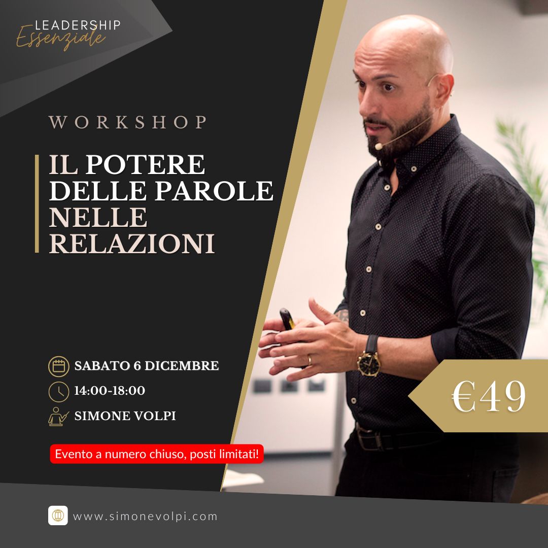Dopo il successo del workshop di ottobre, torniamo in aula con un nuovo tema: l’intelligenza linguistica per i leader. Il Metodo Leadership Essenziale® rimane la cornice: un approccio pratico e realistico per guidare te stesso e influenzare positivamente gli altri, con etica e coerenza.